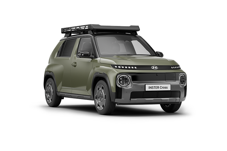 The INSTER packs a big personality with distinctive small EV style that shines with circular LED headlamps, pixelated turn signals, and sleek circuit board-style bumper. Step it up with INSTER Cross, adding stylish alloy wheels and all-in rugged good looks.